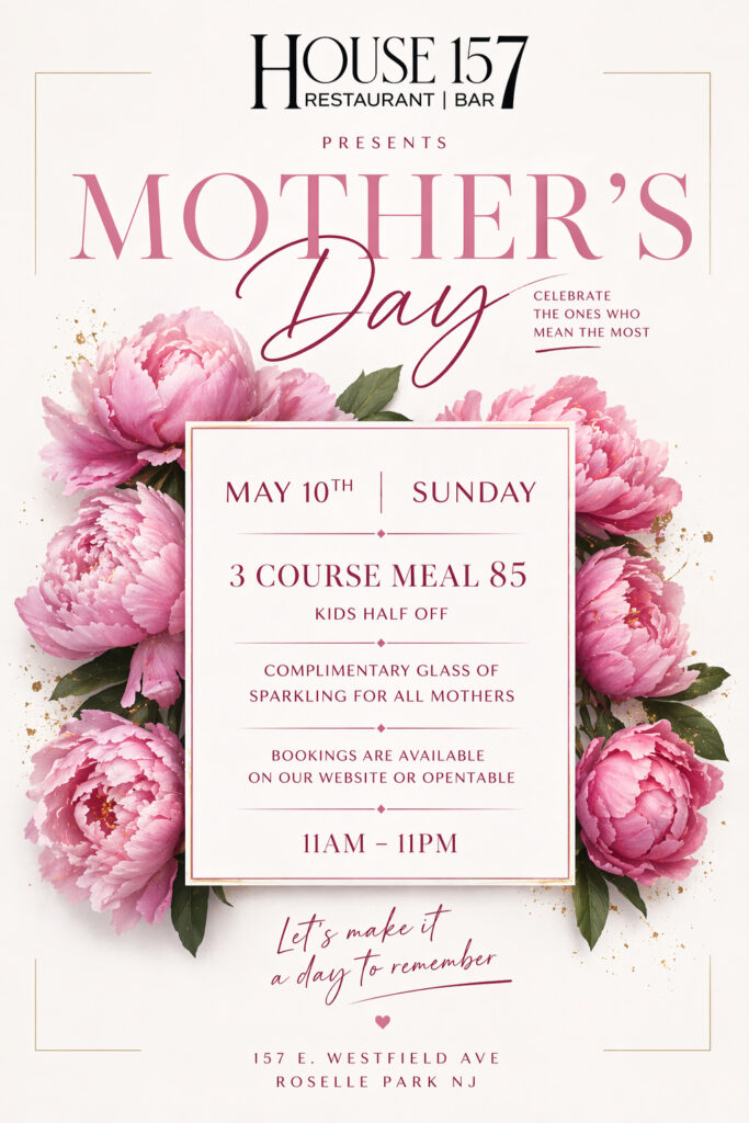 Global fusion dining restaurant in Roselle Park, NJ. Visit House 157 for unique international flavors and a delightful dining experience. House 157, your premier choice for an upscale global fusion dining. We invite you to experience fancy and elegant, carefully crafted meals with the finest ingredients. Each dish is inspired by unique international flavors, beautifully blending culinary traditions from around the world. Whether you’re seeking a refined dinner or a delightful brunch, House157 caters to every palate. Ultimately, our menu guarantees an unforgettable dining experience for all our guests.
